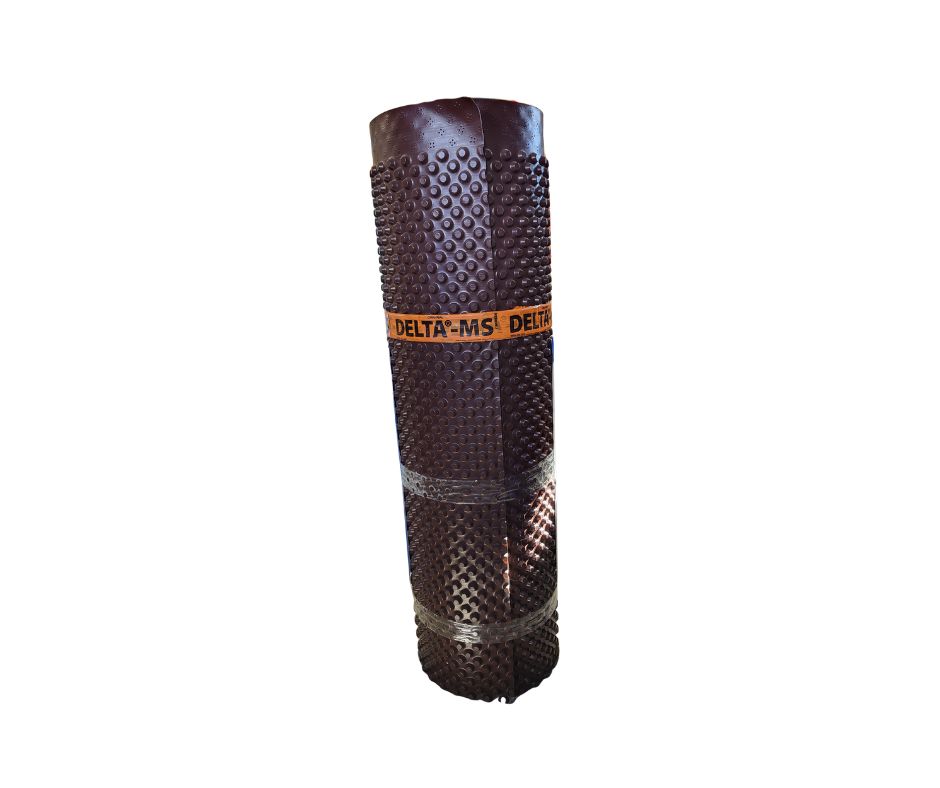 DELTA®-MS – Below-grade Dimpled Membrane is 65.6′ long and comes in widths of 3.5.,5,6.6,7 and 8 feet