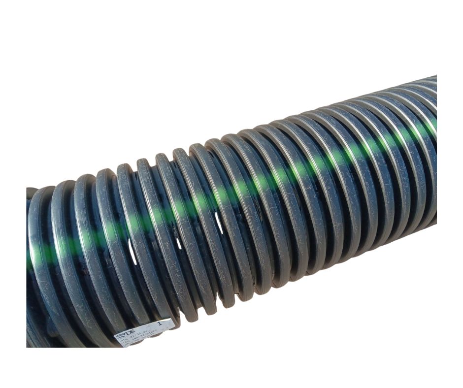 Dual wall perforated culvert pipe stocked in 4,6 and 8 inch x 20′ lengths. Larger diameters are available.