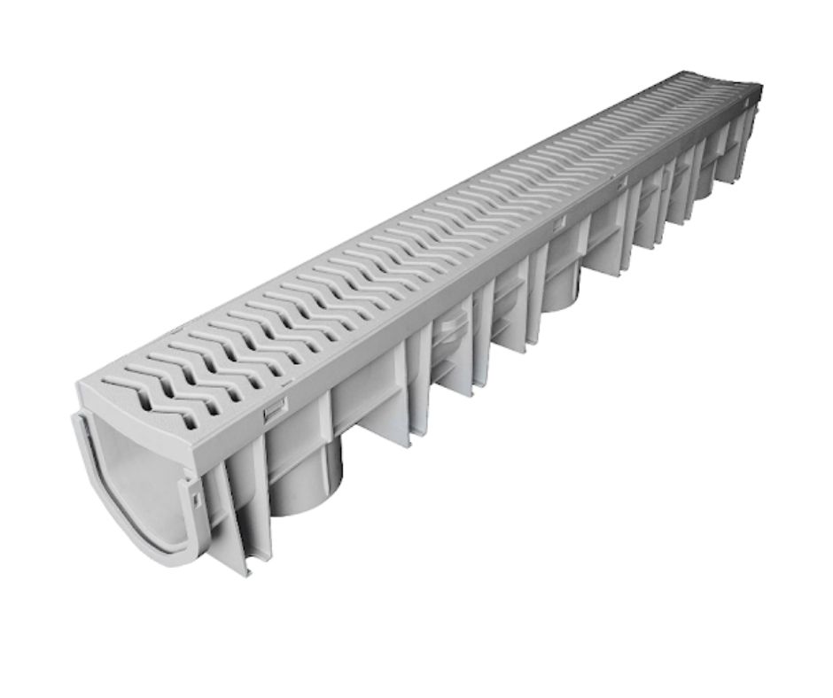 StormDrain Plus brand 4″ wide trench drains – end plates,adaptors,corners,contractor packs,singles. Designed to withstand automotive vehicle weight. Galvanized grates are also available.